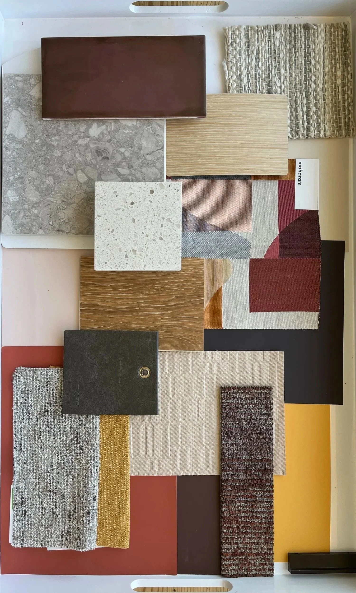 Rendered CAD plans through Adobe, and Revit model perspectives through Enscape. Prepared material boards and furniture/finish schedules for car dealership, office, and retail projects.